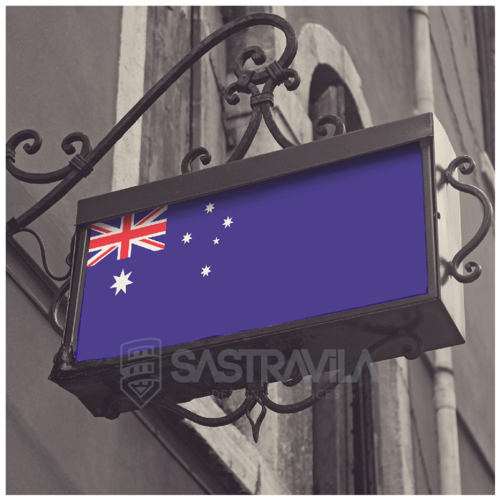 Desain bendera AUSTRALIA dengan resolusi tinggi (anti pecah) dapat diaplikasikan pada media cetak, media promosi luar ruang seperti spanduk, baleho dan billboard.